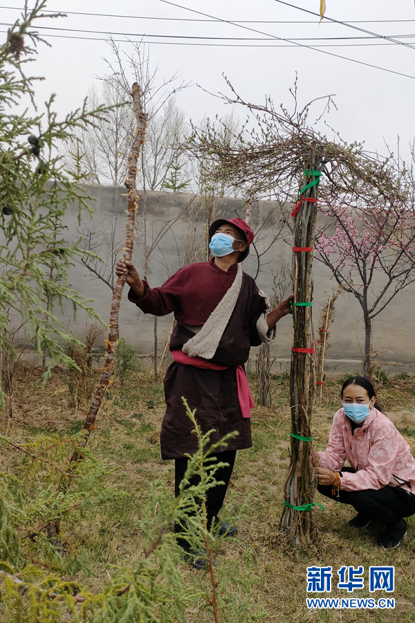 都兰县察苏镇林业站站长才让太(右一)和村民查看树木的生长情况。新华网(16.280, 0.68, 4.36%)发