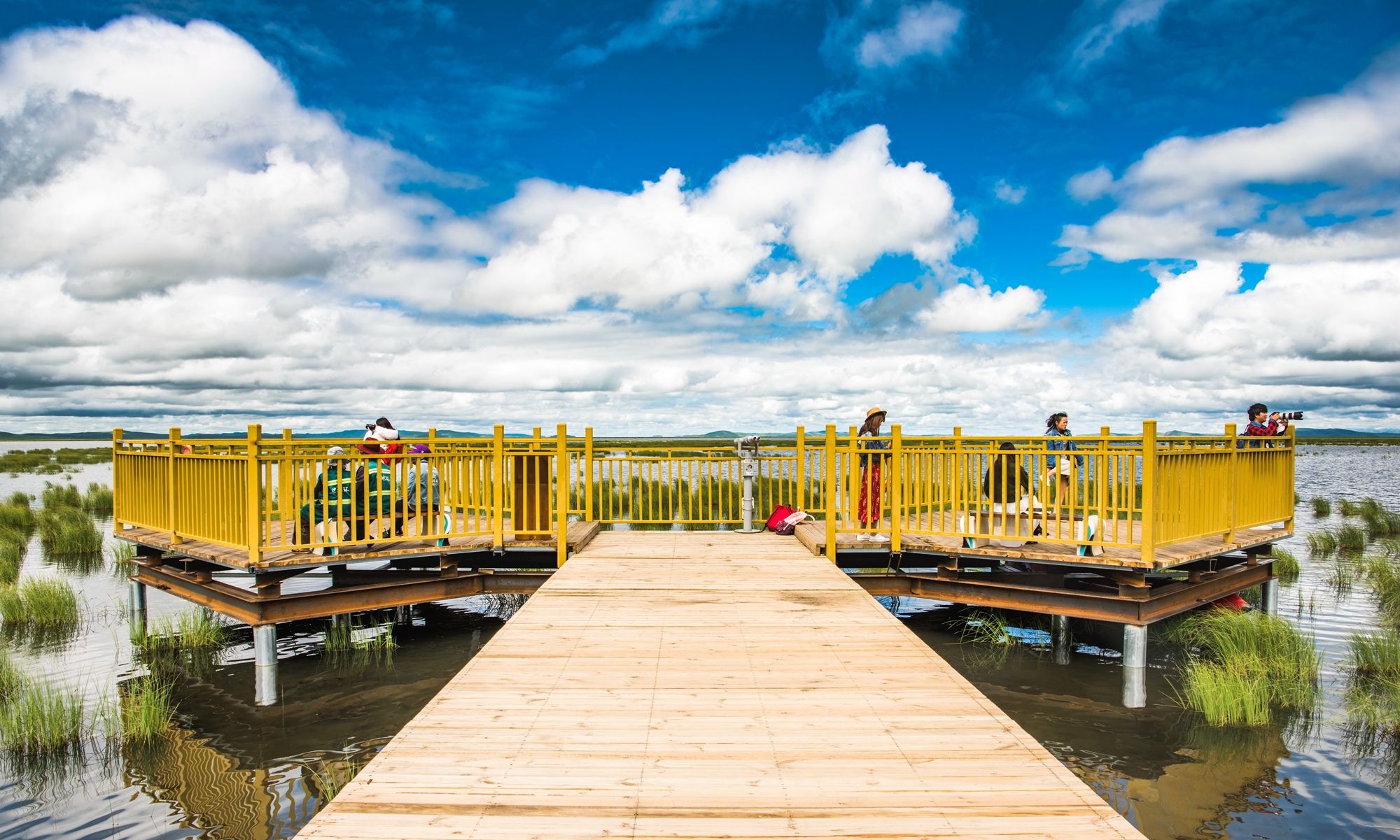 坐在花湖的岸边,脑海里突然浮现出那句优美的歌词“我们去大草原的湖边,等候鸟飞回来”。