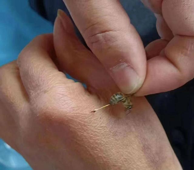 将黑蜂精准的放在穴位上治疗 (刘旺 摄)