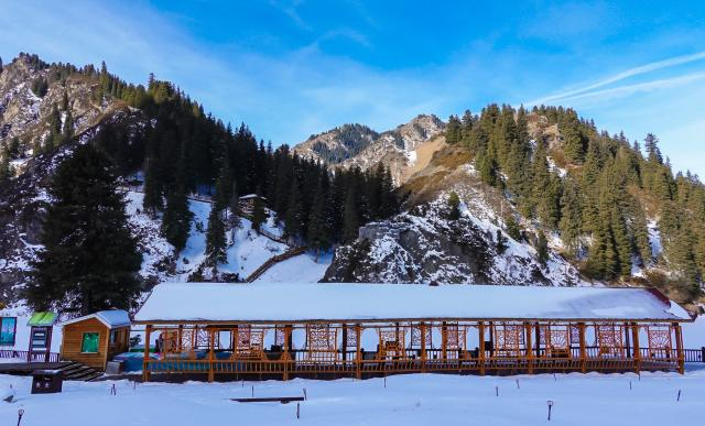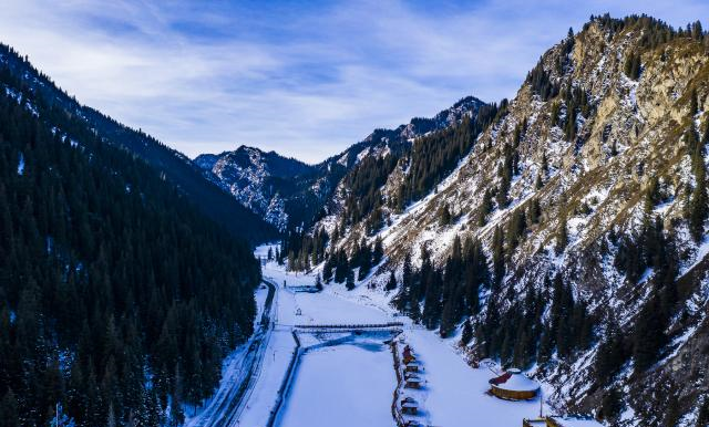 即便是在冬季,我们依然能够感受到这里丰富的色彩,能想象到春天有碧绿的山谷草原,夏天有五彩的湖光山色。看那奔涌的溪流,壮丽的冰川,这里真正是囊括了处沙漠之外新疆所有的自然景观。