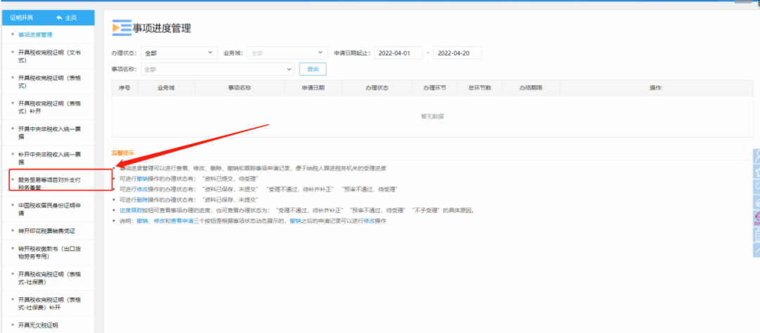 答:点击进入【我要办税】-【证明开具】-【服务贸易等项目对外支付税务备案】进行申请即可。