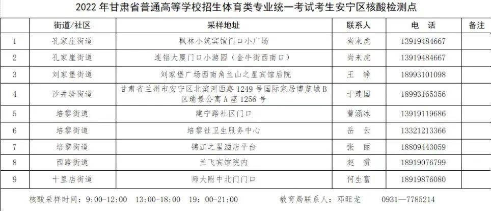 甘肃省教育考试院发布的核酸检测点信息。图/甘肃省教育考试院官方微信