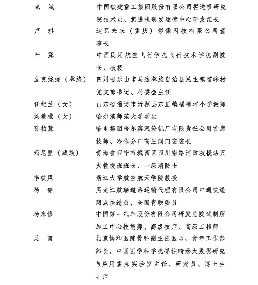 以下为第26届中国青年五四奖章获奖者名单:
