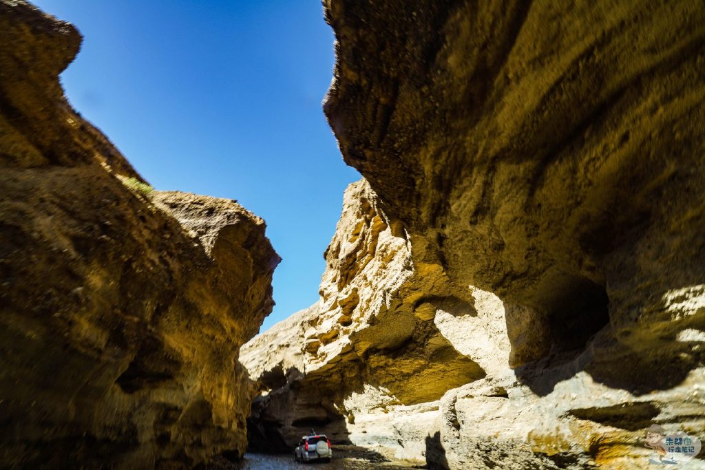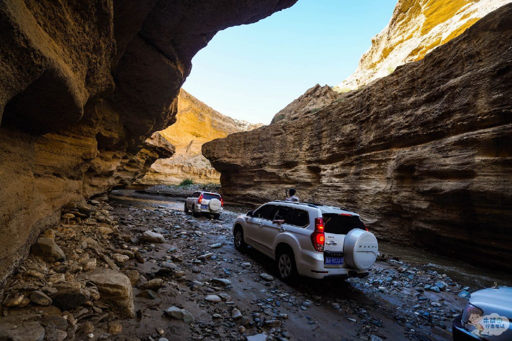 另外每年4-8月谷底还会形成一条小河,据说都是昆仑山上的冰川积雪融水,虽只有浅浅一层,却格外地清冽纯净,加上谷底凉风扑面,让人顿觉酷暑全消。当然由于谷底没有观光步道,所以只能驾驶底盘较高的越野车涉水而过,不过提醒大家考虑到安全问题,最好不要在天气不好的时候前往峡谷哦。